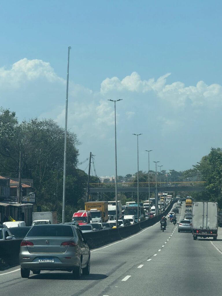 O trânsito está congestionado no local, e policiais acabaram de chegar para organizar o fluxo de veículos e apurar as circunstâncias do acidente.