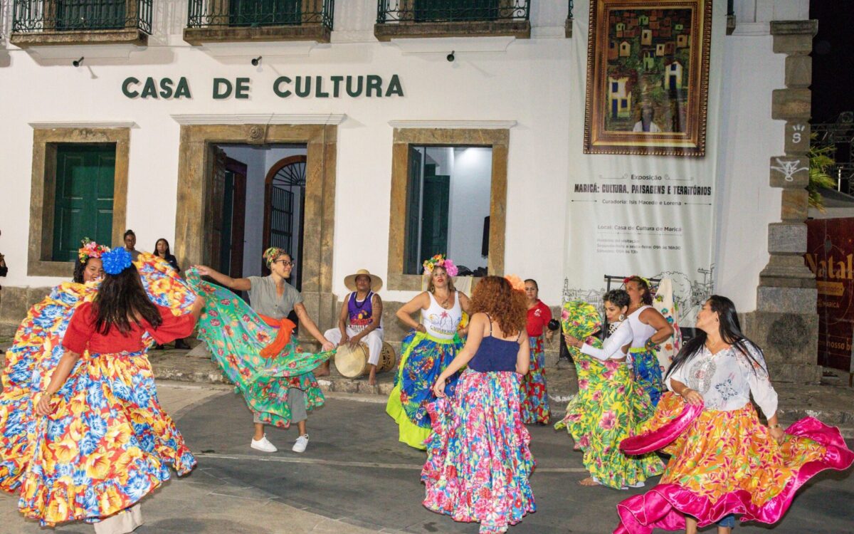 A atividade também contou com uma apresentação do grupo Carimborinas, coletivo de carimbó de Maricá, evidenciando o elo entre manifestações populares e o patrimônio imaterial do município.