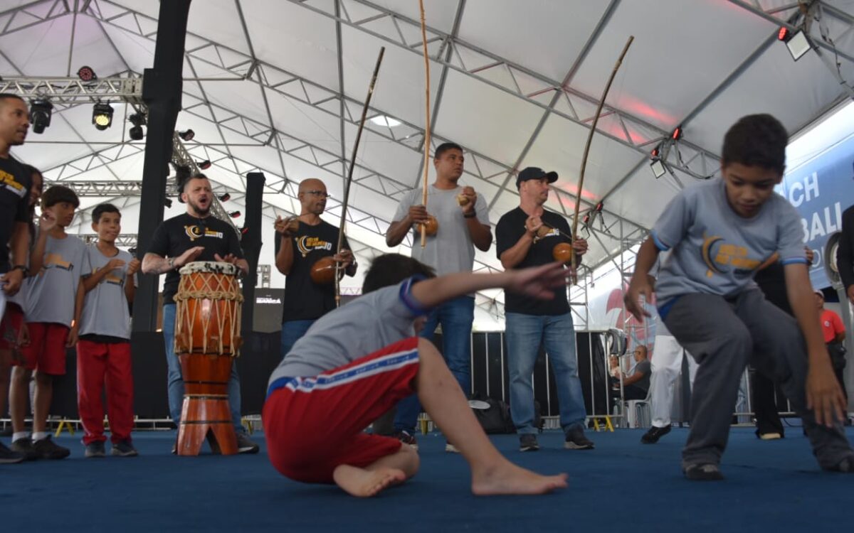 Crianças vivenciam capoeira no segundo dia do ‘Volta ao Mundo Bambas’ em Maricá